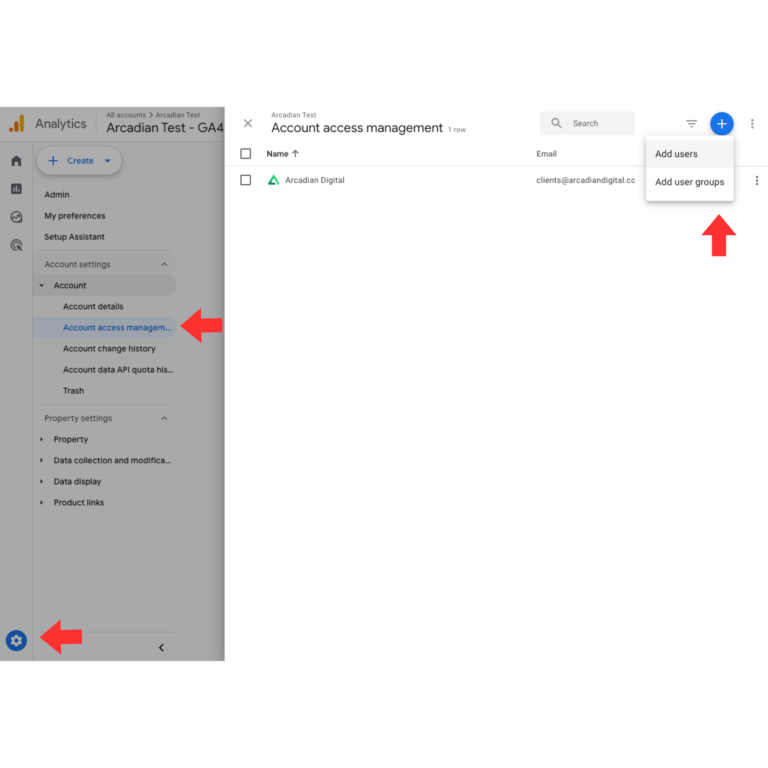 We will be looking to add “clients@arcadiandigital.com.au” to your existing Google Analytics/GA4 Property.